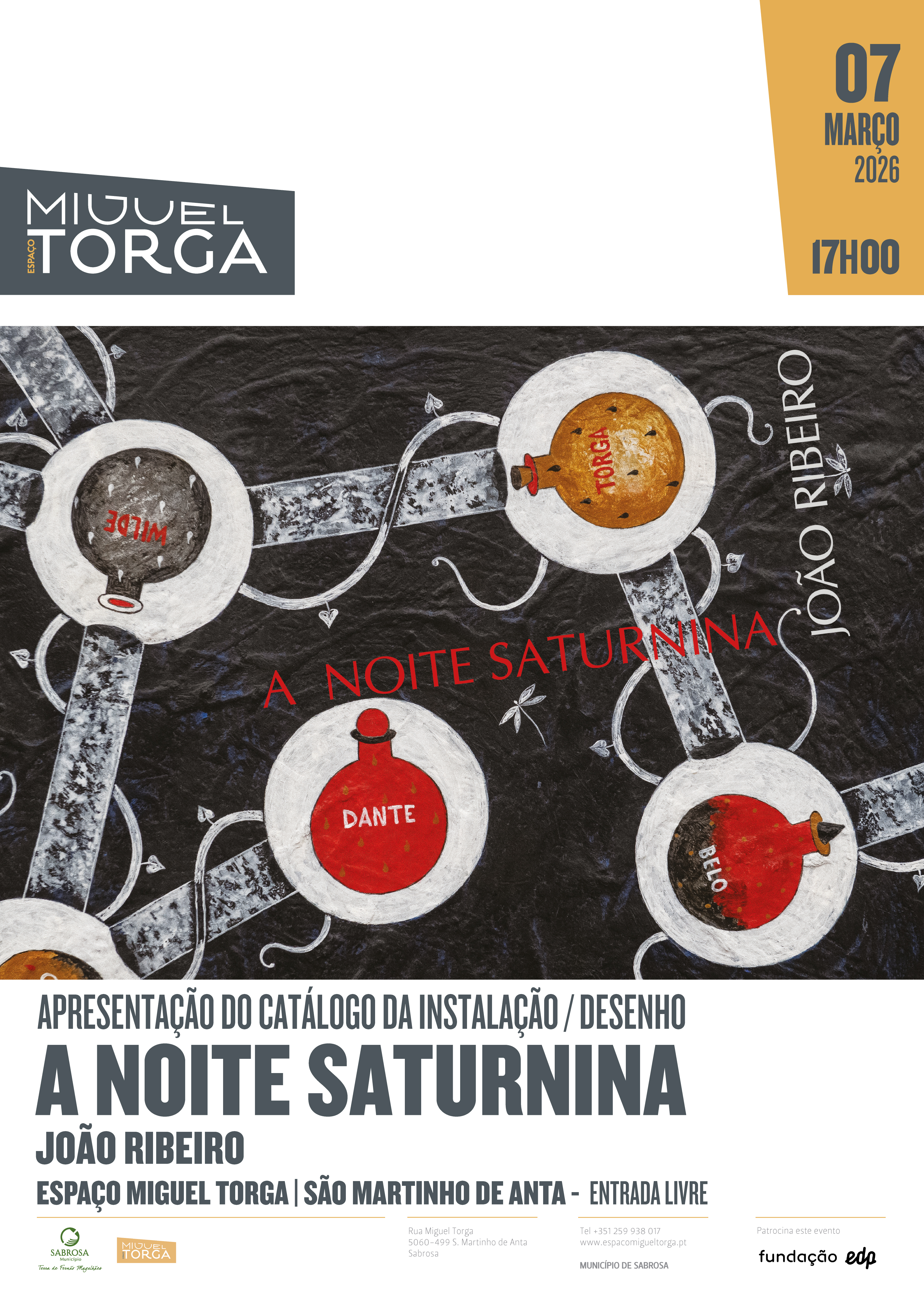 07 março | 17h00 | Apresentação do catálogo da instalação/desenho "A Noite Saturnina" | João Ribeiro | Espaço Miguel Torga