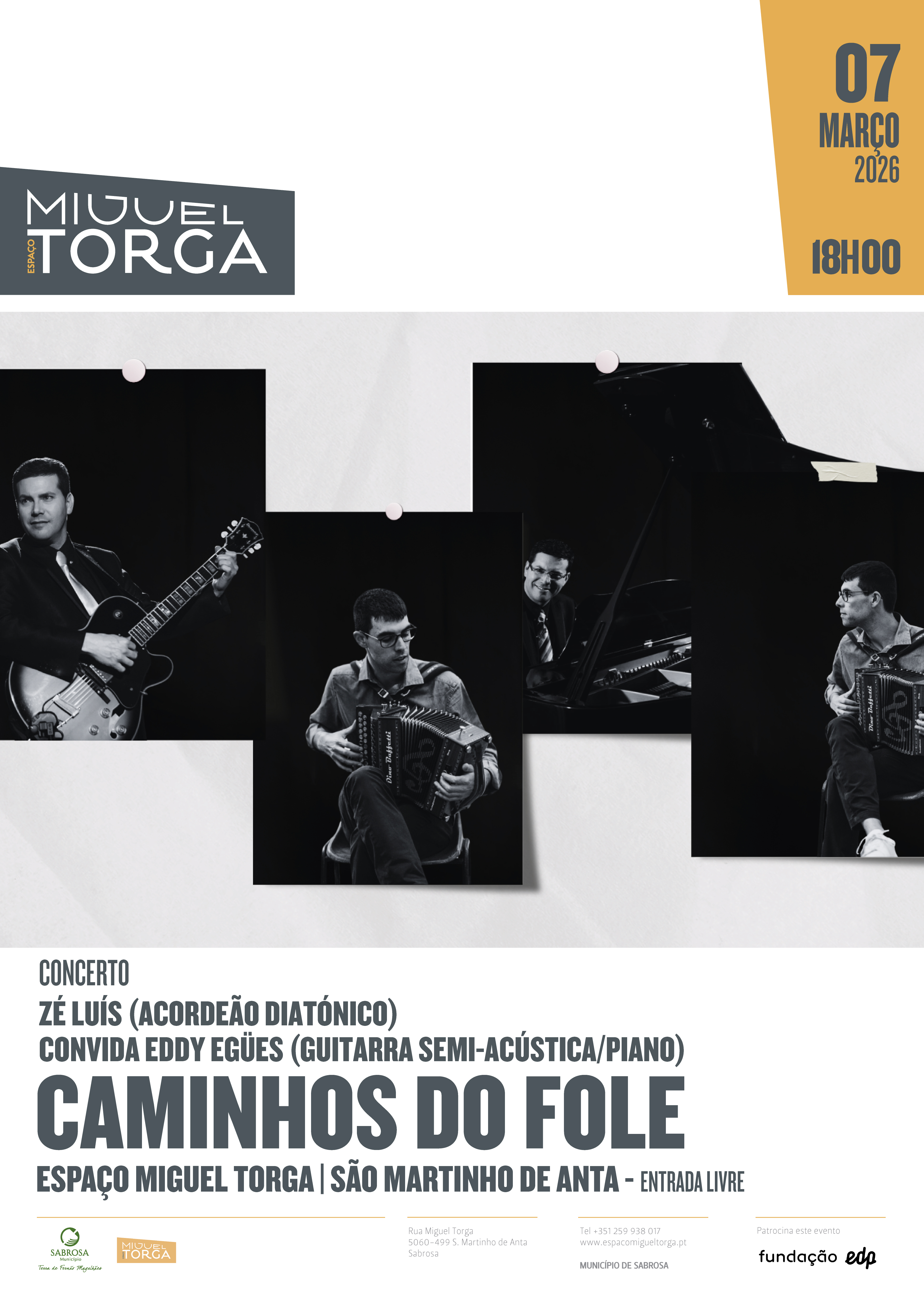 07 março | 18H00 | Concerto "Caminhos do Fole" | Zé Luís (acordeão diatónico) convida Eddy Egües (guitarra semi-acústica/piano) | Espaço Miguel Torga