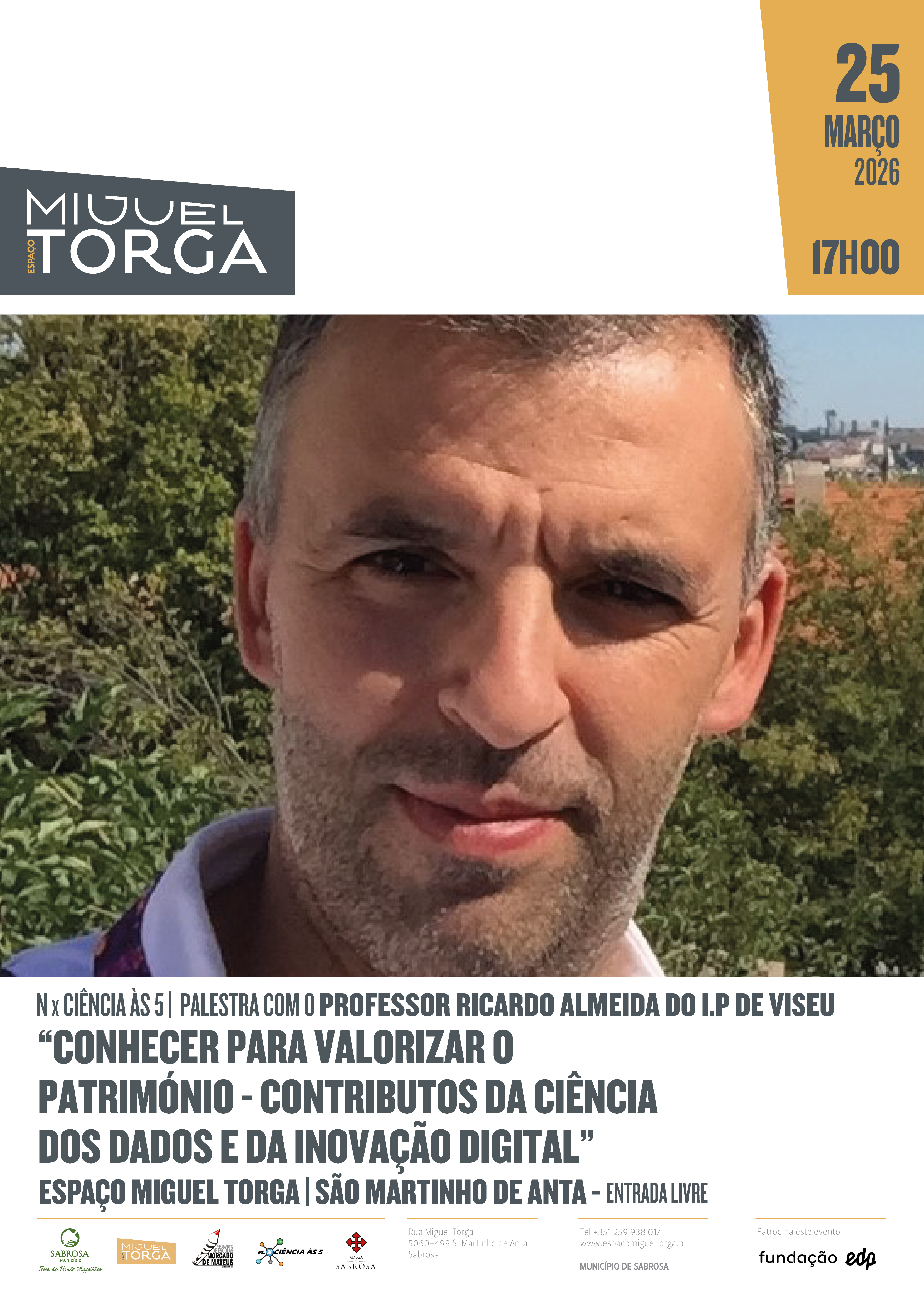 25 março | 17H00 | Nx Ciência às 5 | Palestra "Conhecer para Valorizar o Património - Contributos da Ciência dos Dados e da Inovação Digital" | Professor Ricardo Almeida | Espaço Miguel TorgaEntrada livre