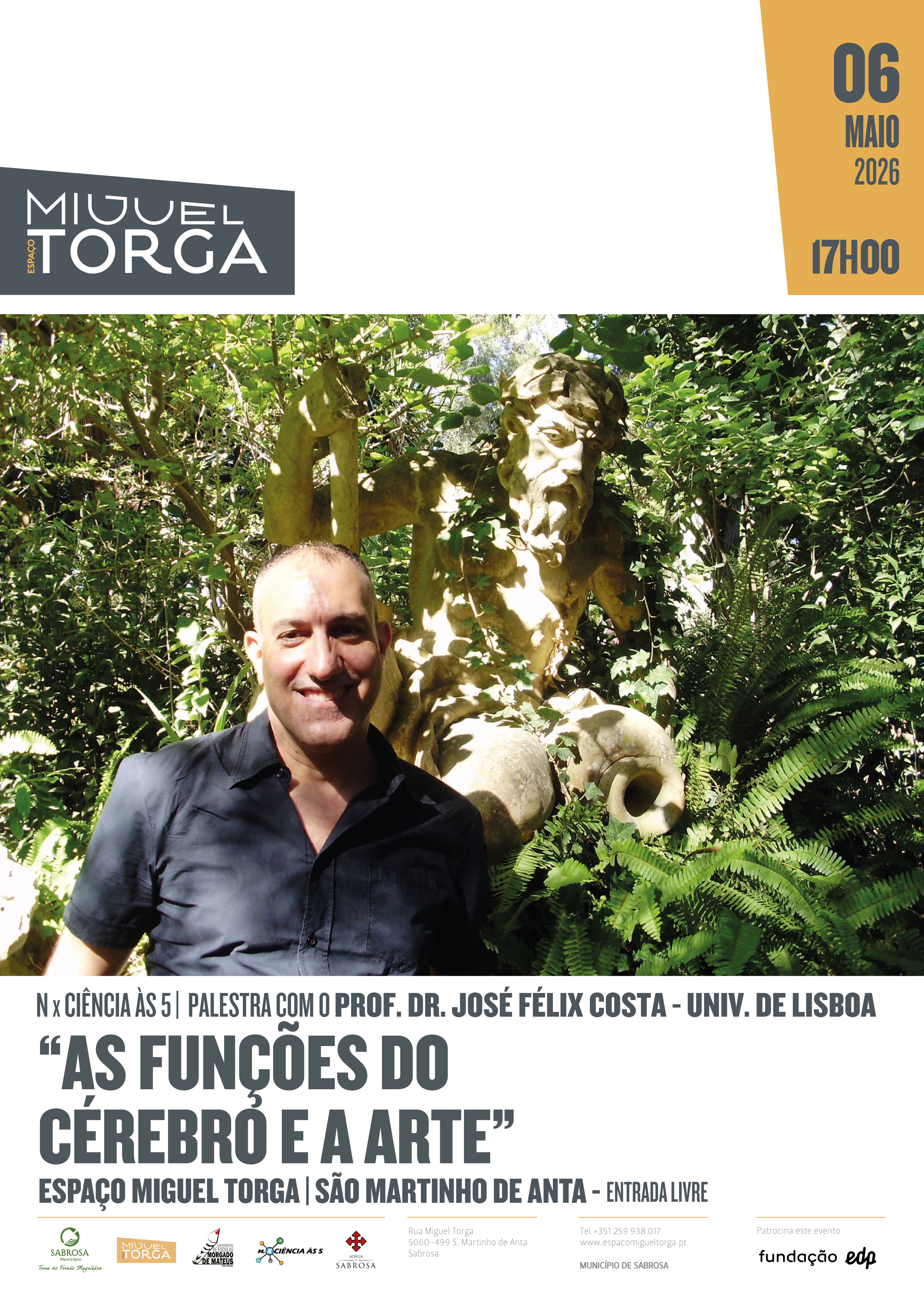 06 maio | 17h00 | Nx Ciência às 5 | Palestra "As Funções do Cérebro e a Arte", com o Prof. Dr. José Félix Costa (Universidade de Lisboa) | Espaço Miguel Torga